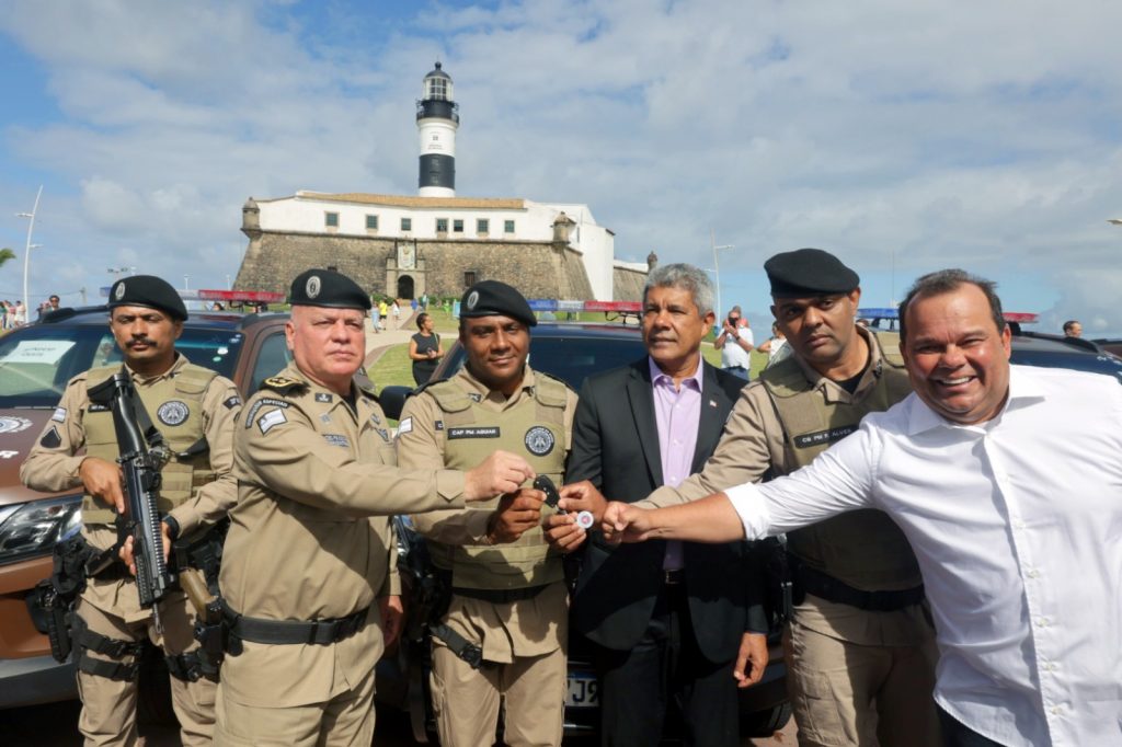 Ao lado do vice-governador, Geraldo Júnior, Jerônimo anunciou que outras 17 viaturas serão entregues para a região extremo sul do estado. “Aqui, hoje, nós estamos abrindo um novo ciclo de entregas. É um compromisso do nosso de programa de governo. Estamos entregando viaturas semiblindadas, as portas laterais, o capuz e vidro dianteiro [são blindados], uma estratégia em função dos últimos acontecimentos, da quantidade de viaturas atingidas nesses locais”, afirmou o governador, que também estava acompanhado do secretário de Segurança Pública, Marcelo Werner, e do comandante-geral da PMBA, Coronel Paulo Coutinho. Jerônimo ainda anunciou que as câmeras corporais nos uniformes dos policiais já vão ser testadas dentro dos próximos dez dias.