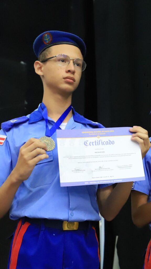 Premiações – Por sua vez, o estudante Iago Alves Dias, filho de Débora Alves e Cícero Dias, tem colecionado premiações em diversos certames dos quais participa. Somente em 2023, foi medalhista de ouro na Olimpíada Brasileira de Astronomia e Astronáutica (OBA), medalhista de bronze na Olimpíada de Matemática do Sul da Bahia (OLIMAT), promovida pela Uesc; Medalha de ouro nacional nível 2 na 18ª OBMEP; medalhista de ouro regional nível 2 na 18ª OBMEP; além de membro fundador do Clube Ilheense de Astronomia e Ciências (CIAC), bolsista de Iniciação Científica Júnior do CNPq – Grande área: Ciências Exatas e da Terra / Área: Matemática (Renovado para 2024); e monitor bolsista do programa Mais Estudo Bahia/Componente Curricular: Matemática.