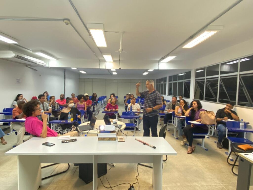 A aula de Técnicas Gestuais de Regência foi realizada no auditório do Pavilhão de Pós-Graduação Professor Max de Menezes. Para o maestro Antonio Melo, regente do Coral da Uesc, a visita do professor David Junker representa “o fortalecimento do movimento do canto coral instrumental e a qualificação dos alunos, aprimorando seus gestos para desenvolver nos grupos uma posição mais assertiva.”