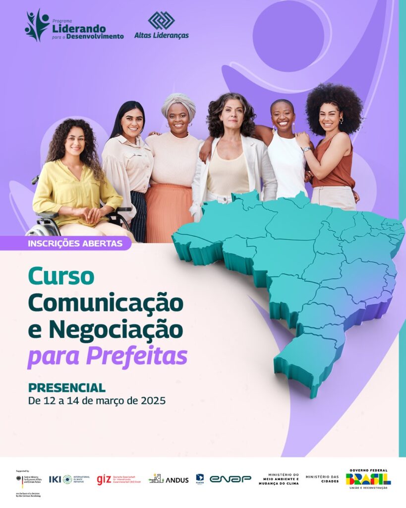 O curso tem como objetivo capacitar prefeitas em exercício de mandato eletivo no desenvolvimento de competências em liderança, com foco na comunicação estratégica e na negociação. A formação busca habilitá-las a comunicar propósitos, planos, estratégias e resultados com confiança, além de aplicar conceitos e ferramentas de liderança mediadora para a resolução de conflitos na gestão pública.