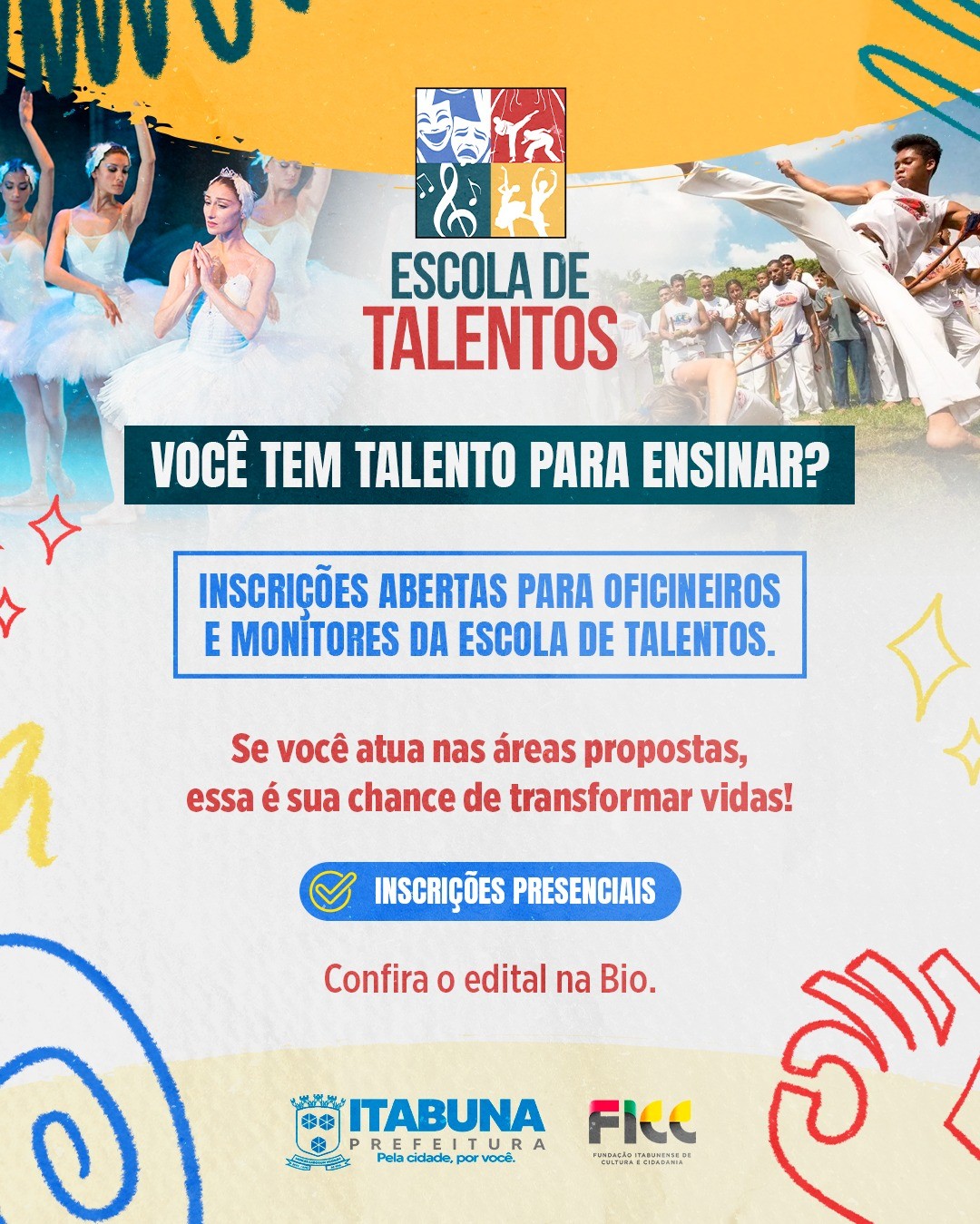 A Prefeitura de Itabuna, por meio da Fundação Itabunense de Cultura e Cidadania (FICC), deu início a uma nova e aguardada temporada da Escola de Talentos, um projeto que já impactou a vida de centenas de crianças, adolescentes e jovens itabunenses através da arte e da cultura.