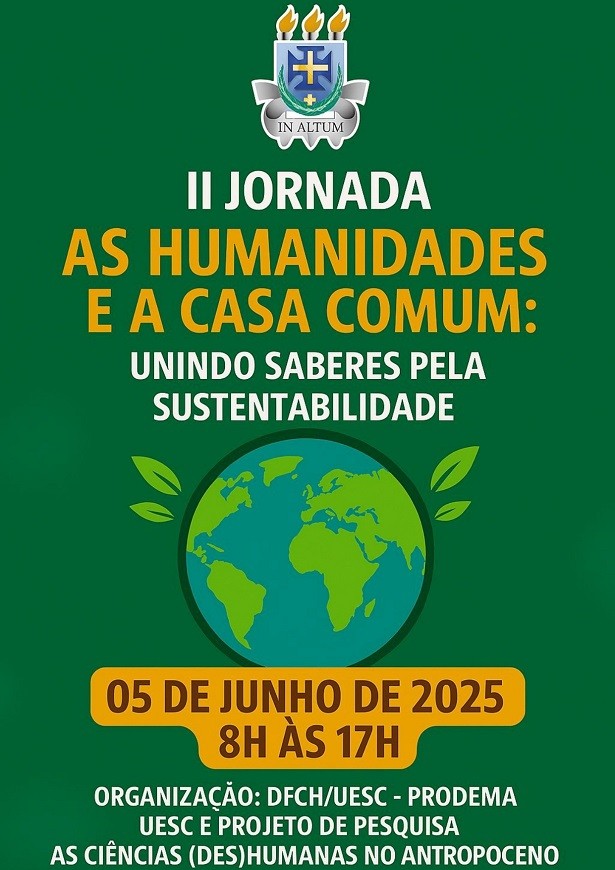 O Departamento de Filosofia e Ciências Humanas (DFCH) da Universidade Estadual de Santa Cruz (UESC) vai promover, no dia 5 de junho de 2025, a II Jornada “As Humanidades e a Casa Comum”. O evento científico, que acontece na Sala 2202 do Pavilhão Adonias Filho, é uma celebração ao Dia Mundial do Meio Ambiente, data instituída pela Organização das Nações Unidas (ONU) para sensibilizar a sociedade sobre os desafios ecológicos.