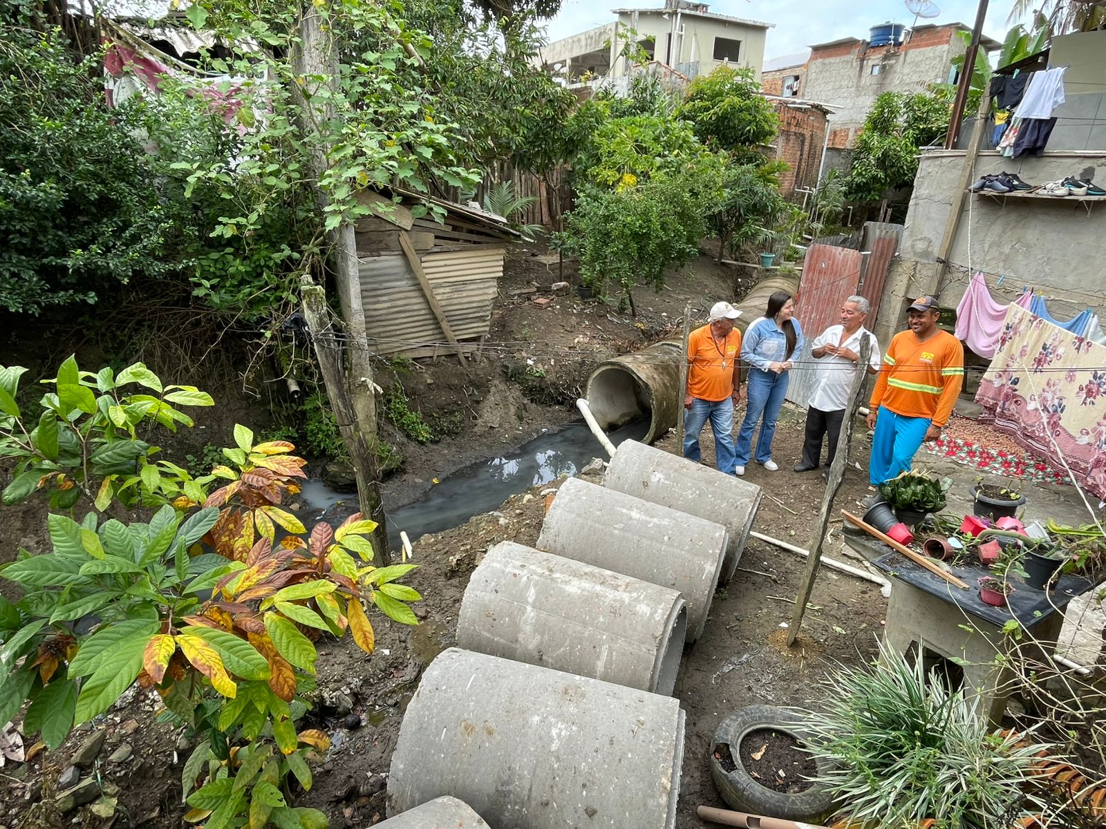 Uma terceira equipe da Infraestrutura está construindo uma rede de esgoto e drenagem, com cerca de 60 metros de extensão, com manilhas na travessa Novo Horizonte, próximo ao colégio Gilberto Amado e a rua Paraguaçú. Uma antiga reivindicação (de décadas) dos moradores, que finalmente está sendo feita.