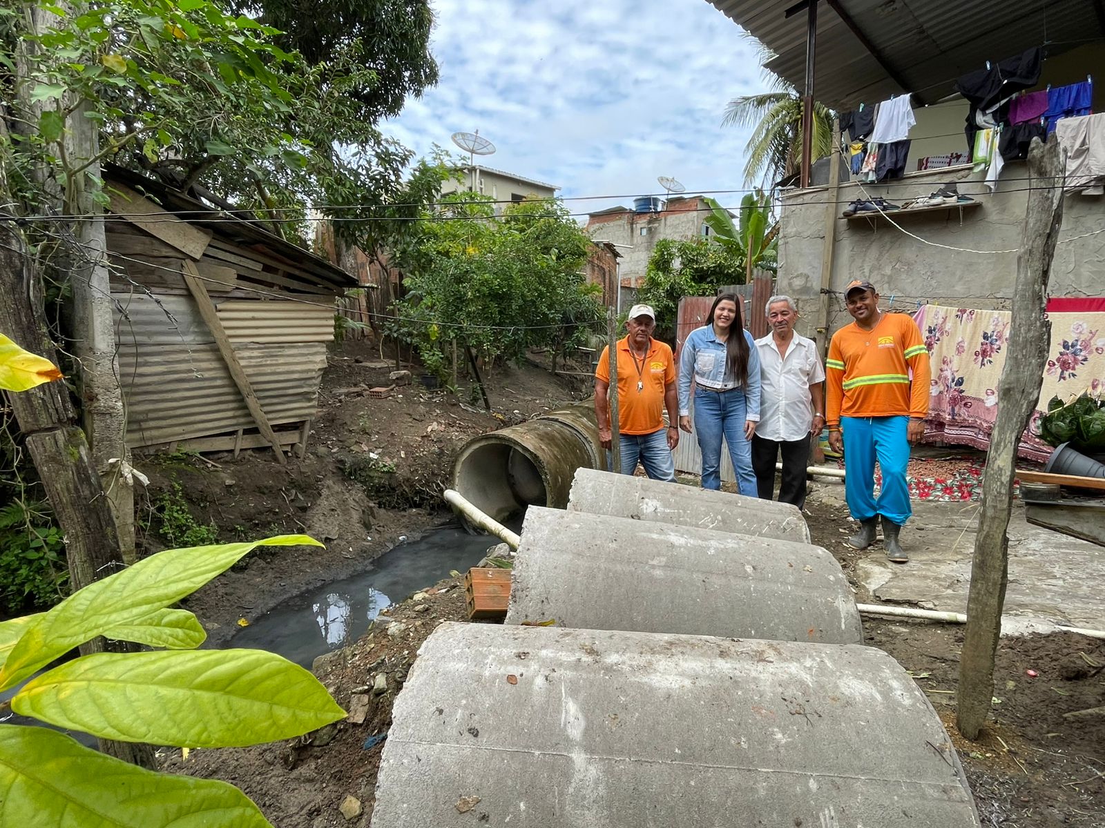 Uma terceira equipe da Infraestrutura está construindo uma rede de esgoto e drenagem, com cerca de 60 metros de extensão, com manilhas na travessa Novo Horizonte, próximo ao colégio Gilberto Amado e a rua Paraguaçú. Uma antiga reivindicação (de décadas) dos moradores, que finalmente está sendo feita.