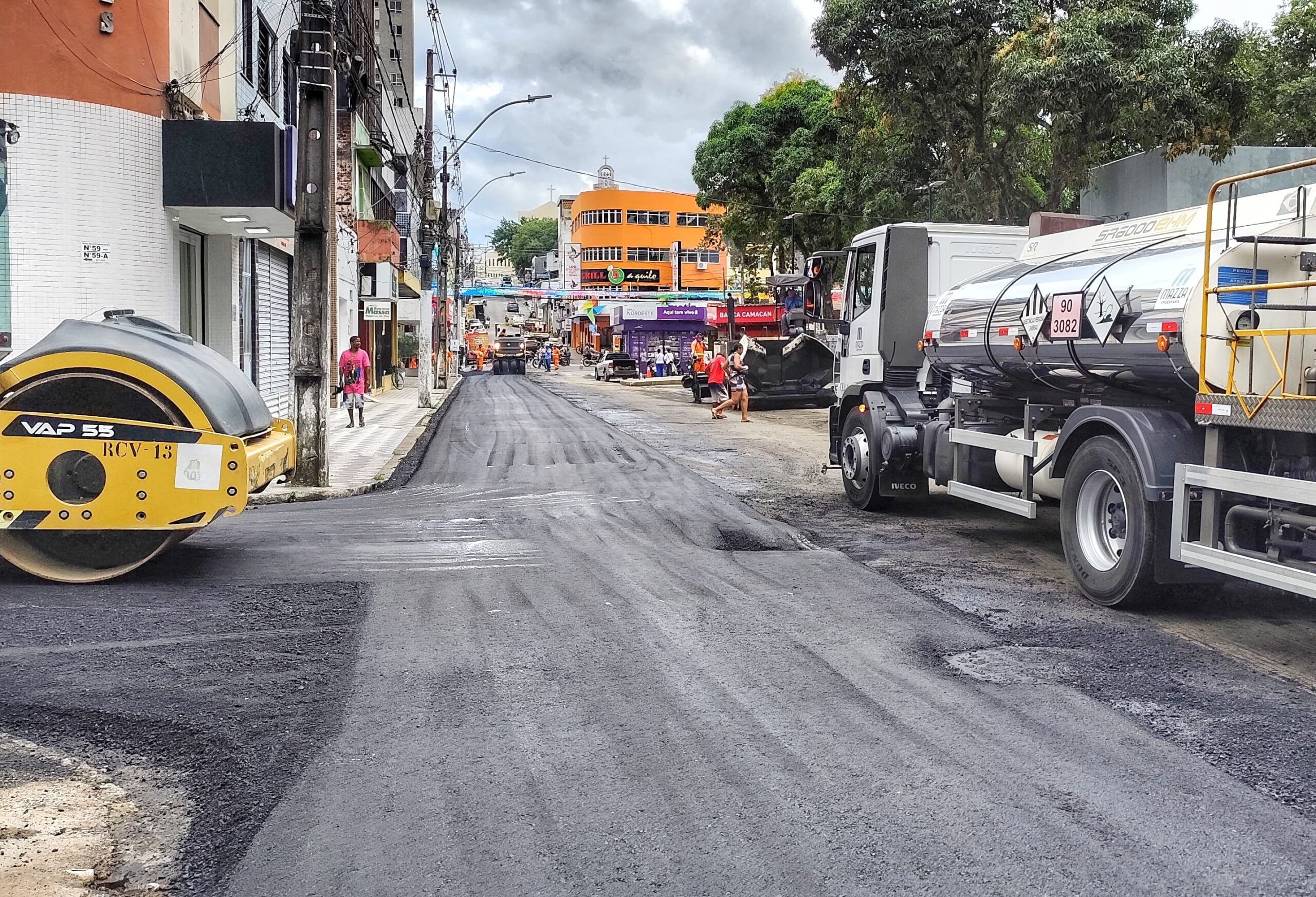 A Prefeitura de Itabuna, por meio da Secretaria de Infraestrutura e Urbanismo (SIURB), iniciou na manhã desta quinta-feira, dia 26, a execução da recuperação do pavimento asfáltico em algumas vias do centro da cidade, entre as quais a Rua Mariá Ferreira, no Centro, por conta da entrega da Praça Otávio Mangabeira.