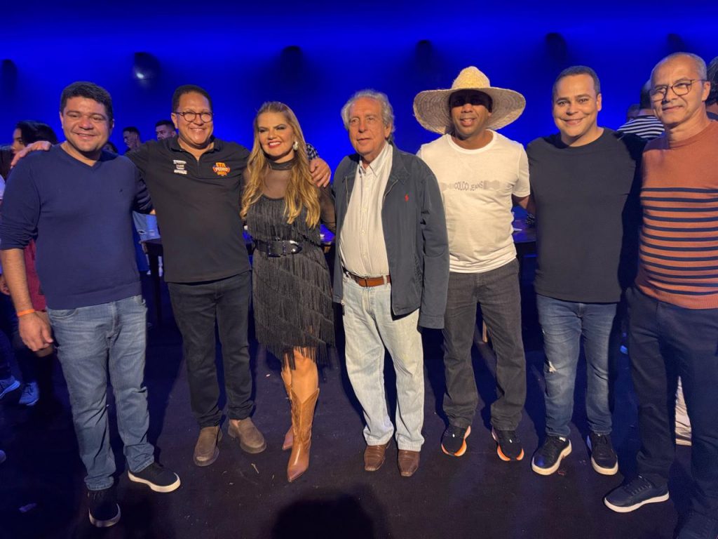 Legenda: Prefeito Augusto Castro e Primeira-dama Andrea Castro interagem com artistas e convidados – Fotos Thiago Barba Ruiva.