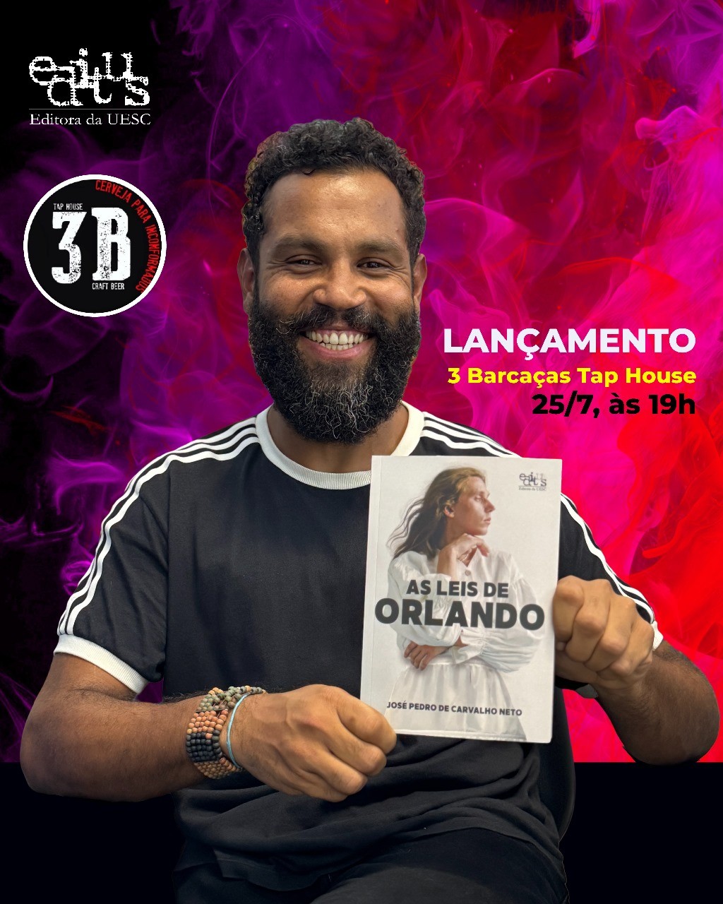 No dia 25 de julho (sexta-feira), às 19h, o escritor e acadêmico José Pedro de Carvalho Neto lança seu novo livro, As Leis de Orlando, com um evento gratuito e aberto ao público na 3Barcaças Tap House, localizada na Avenida Soares Lopes, 506, no centro de Ilhéus.