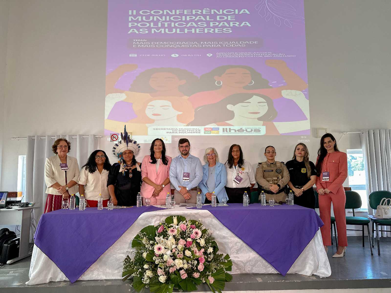 A conferência contou com mesas temáticas, grupos de trabalho e a eleição das delegadas que representarão Ilhéus nas etapas estadual e nacional. O momento também foi marcado pela presença de mulheres que ocupam posições de liderança na administração municipal, entre elas a secretária de Promoção Social, Sayonara Machado, a secretária de Educação, Evani Cavalcante, a secretária de Saúde, Sonilda Mello, a secretária de Cultura, Anarleide Souza, além da primeira-dama e médica Dra. Taís Paula e a vereadora Rúbia Carvalho.