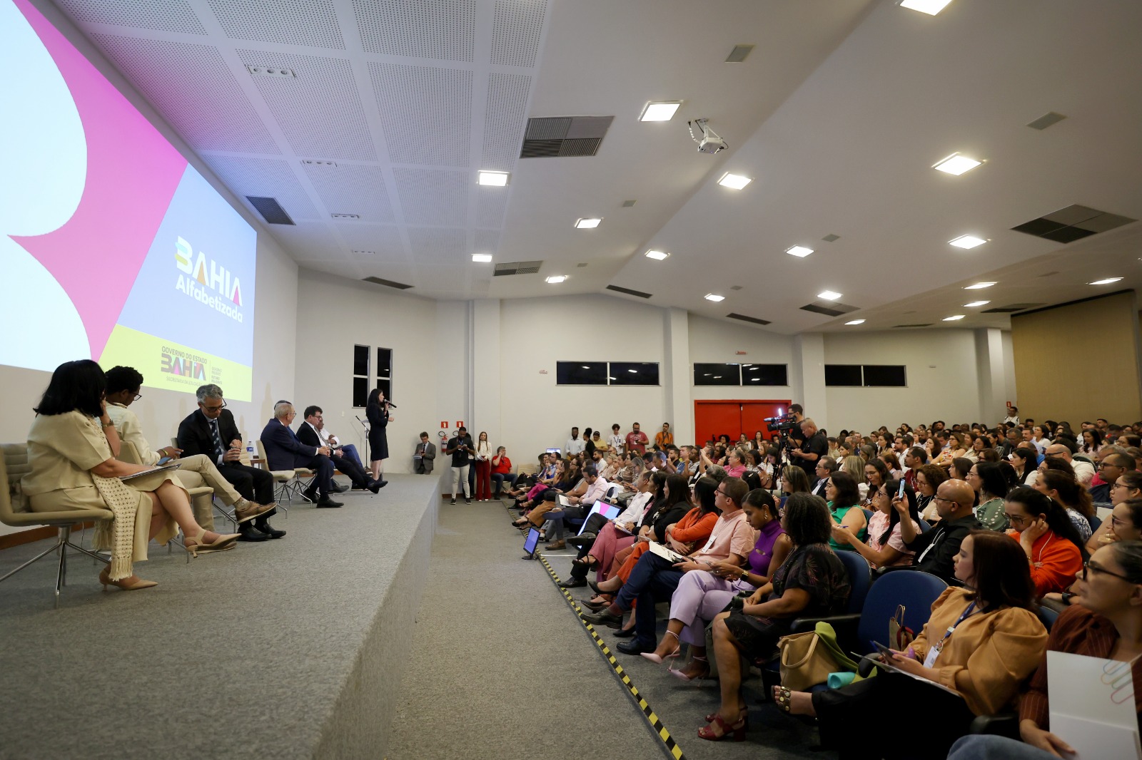O Seminário Estadual Bahia Alfabetizada reuniu, nesta terça-feira (26), na sede da União dos Municípios da Bahia (UPB), em Salvador, representantes de 348 municípios baianos em um grande movimento em defesa da alfabetização. Dividido em dois turnos, o encontro teve como foco o Compromisso Nacional Criança Alfabetizada e o Programa Bahia Alfabetizada, sancionado em agosto deste ano pelo Governo do Estado, por meio da Lei nº 25.668/2025.