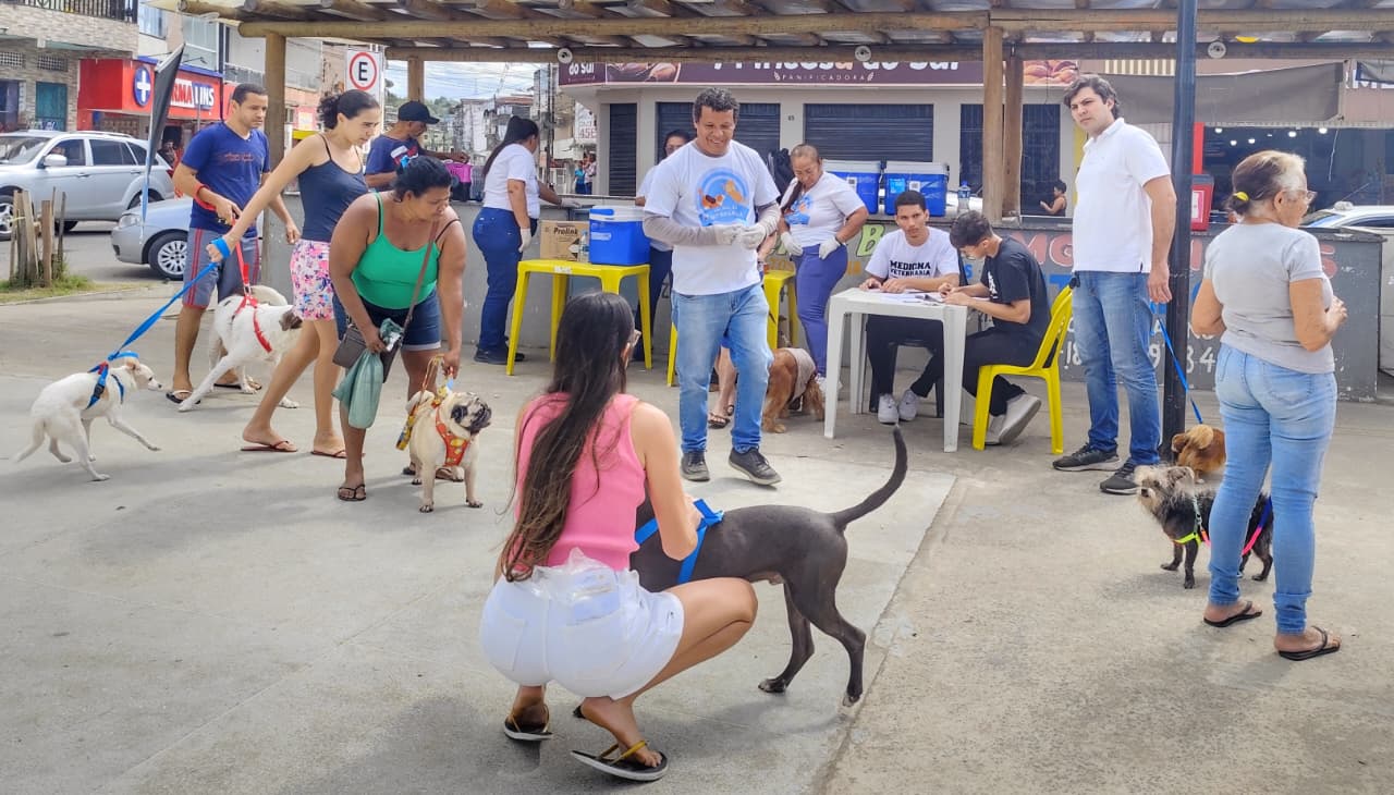 Com a meta de vacinar 40 mil cães e gatos durante a Campanha Antirrábica 2025, as equipes de vacinação da Prefeitura de Itabuna seguem todos os dias nos bairros e nos finais de semana em áreas rurais, das 9 às 16 horas, convidando os tutores a levarem seus animais para vacinação, seja no ponto fixo instalado na praça principal de cada bairro, ou durante busca ativa nas residências.