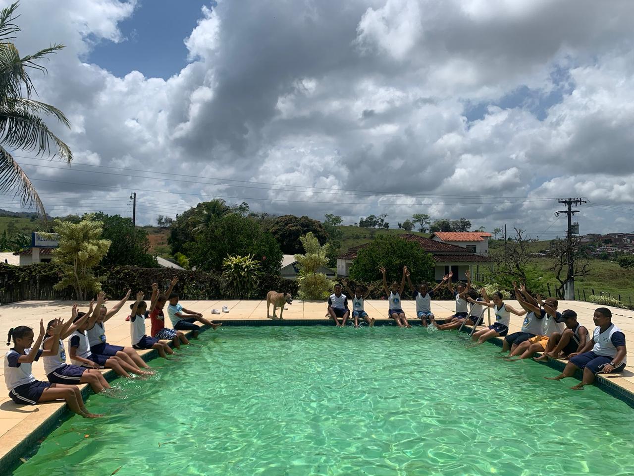 A visita à fazenda aconteceu às 9h da manhã. Na oportunidade, os alunos — que foram caminhando — puderam conhecer as dependências da propriedade, lanchar, tomar banho no local e realizar o plantio de nove mudas de árvores (Pau-brasil, Jacarandá-da-bahia e Jacarandá-branco), fornecidas pelo Horto Florestal da UESC.