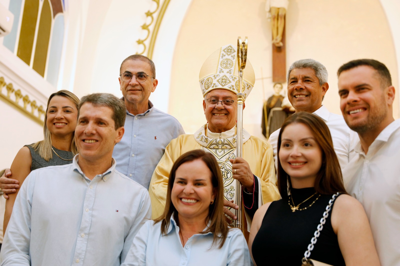 Como parte das celebrações pelos 128 anos de Jequié, o governador Jerônimo Rodrigues participou da missa realizada na histórica Catedral de Santo Antônio, presidida pelo bispo Dom Paulo Romeu. (Secom/BA)