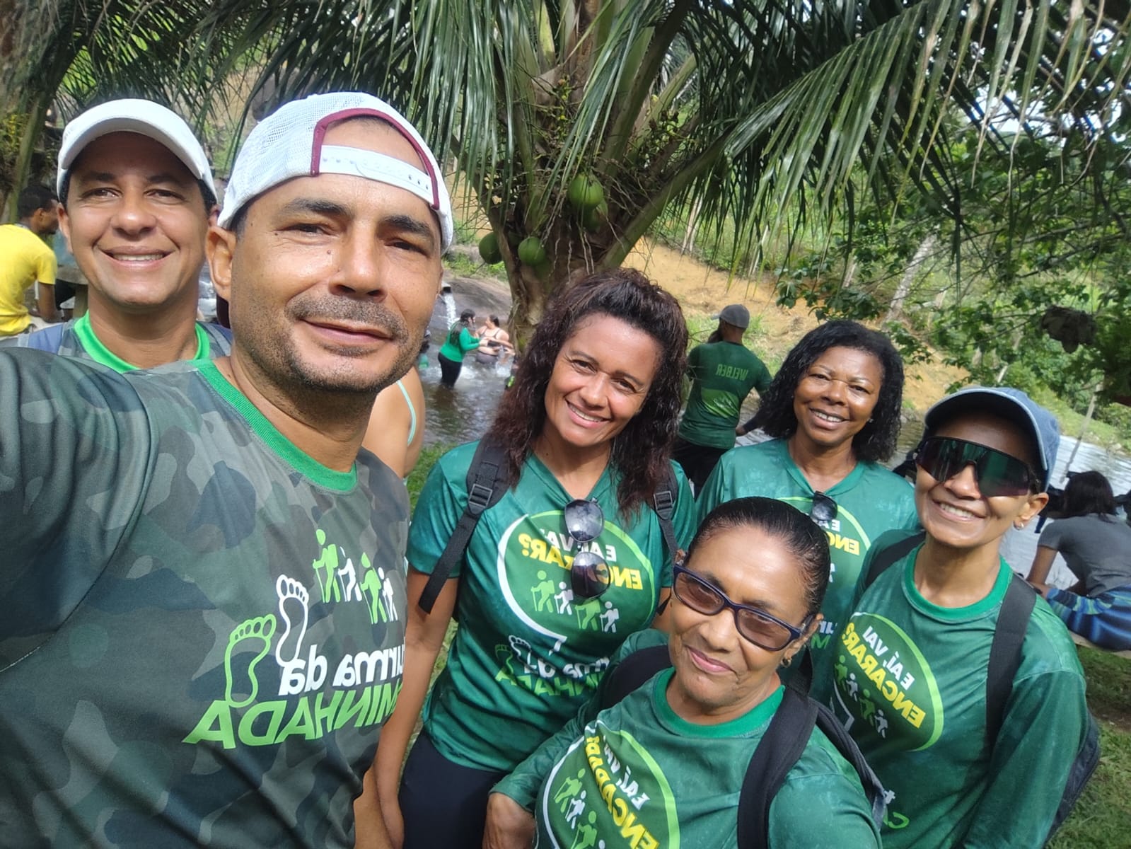 A caminhada saiu cedinho da Praça do Bairro Novo, seguindo pela estrada do Jacarandá até a região do Luxo, com destino final ao Sítio Cantinho da Paz, dos amigos Alvinho e Sueli. Pelo caminho, o grupo fez uma parada estratégica na famosa Bica do Jacarandá, onde todos aproveitaram para tomar um revigorante banho e recarregar as energias.
