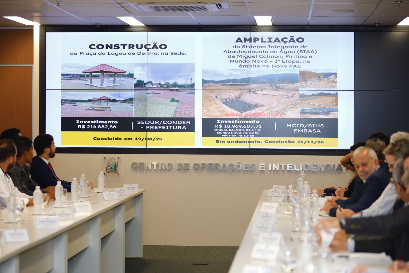 Um dos destaques é a ampliação do Sistema Integrado de Abastecimento de Água (SIAA) de Miguel Calmon, Piritiba e Mundo Novo – 1ª Etapa, no âmbito do Novo PAC, coordenado pelo Ministério das Cidades, Secretaria de Infraestrutura Hídrica e Saneamento (SIHS) e Embasa. O investimento total é de R$ 19 milhões e a obra está em andamento com conclusão prevista para novembro de 2026. Além dessa intervenção, está prevista a 2ª Etapa da ampliação do SIAA, também no âmbito do Novo PAC, com investimento de aproximadamente R$ 98 milhões. Desse total, R$ 34,5 milhões serão destinados a Miguel Calmon, R$ 34,2 milhões a Mundo Novo e R$ 29,4 milhões a Piritiba. O projeto está em fase de licitação, com previsão de início para dezembro de 2025.