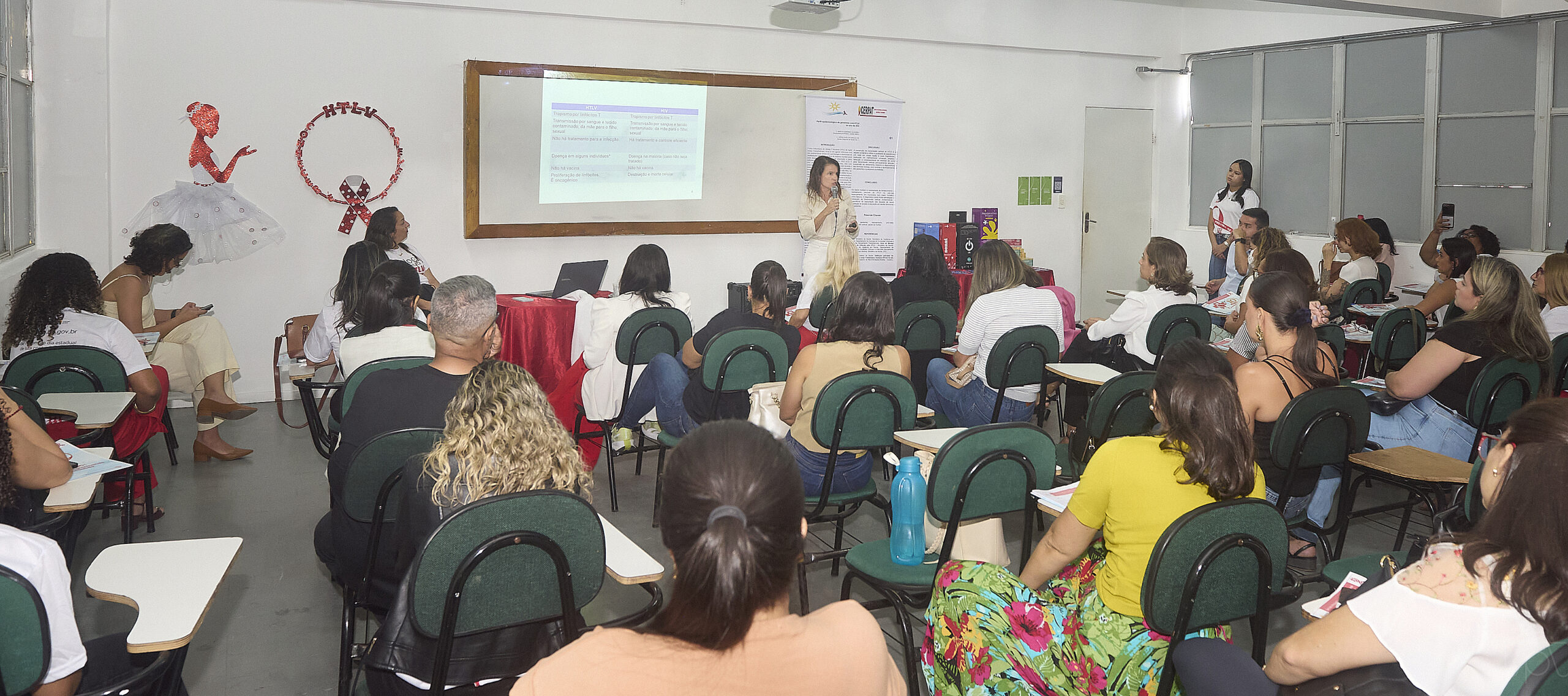 O evento reuniu profissionais de saúde da região, a diretora do Departamento de Vigilância em Saúde, Maristela Antunes, além de pessoas que vivem com o HTLV. O objetivo foi disseminar informações sobre o HTLV – vírus T-linfotrópico humano, sobre o que é a doença, o seu impacto na saúde pública e as formas de prevenção.