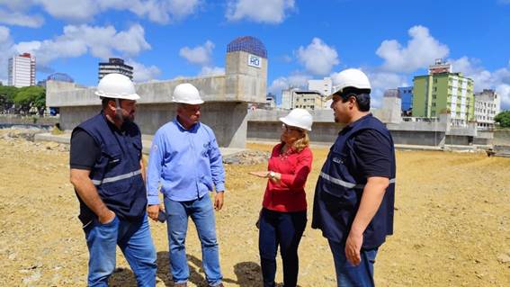 A secretária Sônia Fontes enfatizou que está sendo finalizada a concretagem dos pilares do lado do Conceição e em paralelo já se começou a fazer as formas da fundação da cabeceira da ponte no acesso à Avenida Amélia Amado.